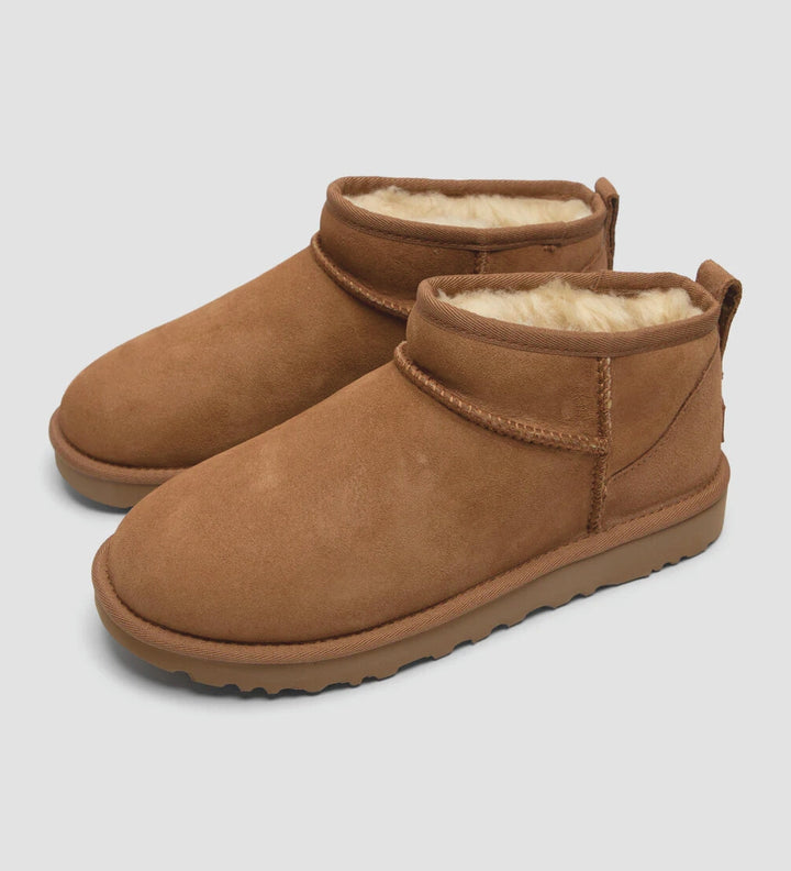 Our Classic Ultra Mini is one of our most coveted Classics. Built-in flair with a lower shaft which makes for easy on-off wear. Pre-treated to keep it looking better for longer, this Classic features everything you love about the original Classic Boot, like signature UGG sheepskin and a flexible, ultra-lightweight sole.